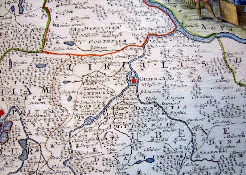Bereits 1235 ist ein Conrad de Landssperch Zeuge bei der Stadtgründung Gubens (siehe Gründungsurkunde aus dem Jahr), das nur wenige Kilometer von Schenkendorf entfernt liegt. Man kann daher davon ausgehen, dass das Geschlecht um diese Zeit sicher in der Gegend ansässig war. Wir können wohl auch davon ausgehen, dass die Herrschaft Schenkendorf damals schon zu den Besitzungen der Schenken zählte. Die Schenken v. Landsberg waren in der Niederlausitz in der damaligen Zeit ein bedeutendes Geschlecht, das nicht nur ihre Stammherrschaft Schenkendorf innehatte, sondern auch noch anderen Herrschaftsbesitz. Dies belegen auch zahlreiche Nennungen in Urkunden bei Verkäufen, Käufen eigenen Besitzes oder als Zeugen bei Rechtsakten anderer Art. So gehen auch viele Stadt- und Ortsgründungen (s.o. bei Guben) in der Niederlausitz auf den Einfluß dieses Geschlechtes zurück. Siehe auch die Landkarte (Besitzungen) um 1740, der die Herrschaft Schenkendorf mit sicher einigen Ab- und Zugängen dennoch gut wiedergibt. Abhängig von den jeweiligen Verhältnissen versuchte das Geschlecht auch seinen Einflußbereich auf andere Gebiete auszudehnen, in dem sie z.B. mit Seyda ein Lehen der sächsischen Herrscher annahmen, die 1328 durch Markgraf Ludwig von Brandenburg in den Pfandbesitz der Niederlausitz kamen. Im Jahre 1309 wähle Markgraf Waldemar v. Brandenburg gar Heinrich Schenk v. Landsberg und Schenkendorf zum Vormund seines Sohnes des späteren Heinrich dem Erlauchten. Man kann davon ausgehen, dass diese Ehre nur Geschlechtern zuteil wurde, denen der Landesfürst sehr verbunden war. Es ist bezeichnend für Territorien, insbesondere am Rand des damaligen Reiches, dass das Fehlen einer starken landesherrlichen Gewalt (wie dies bei der Lausitz der Fall war; wechselnder Pfandbesitz) zur Ausbildung interner Machtstrukturen und vor allem zu großen Guts-Herrschaften führte. Eine starke Zentralgewalt hätte dies schon aus Konkurrenzgründen kaum geduldet. Die Familie der Schenken bestand dabei aus verschiedenen Zweigen, die aber ein einheitliches Wappen führten, und so ihre Zusammengehörigkeit dokumentierten. Die Schenken führten gewissermaßen als Dienstwappen einen aufrecht schreitenden gekrönten Löwen auf silbernem Grund im Wappen. Zu einem nicht genau bekannten Zeitpunkt, wohl zum Ende des 13.Jahrhunderts (nicht belegt), hat ein Zweig der Familie, die Schenken v. Schenkendorf, ein eigenes Wappen angenommen (siehe -Wappen) und sich den ursprünglichen Stammsitz der Schenken, nämlich Schenkendorf b.Guben zu seinem eigenen, namengebenden Stammsitz erkoren. Der Grund ist letztlich unbekannt und kann nur vermutet werden. Es ist denkbar, dass die politisch instabilen Verhältnisse in der Lausitz (oft Pfandbesitzer anderer Landesherren) die Tendenz verstärkten, sich letztlich an ein stabileres Herrschaftsgebiet anzulehnen, etwa an Brandenburg im Norden. Dadurch könnte der Weg für einen Teil der Familie frei geworden sein, eine größere Selbständigkeit (zunächst im alten Stammsitz Schenkendorf) zu erlangen. Dies geschah aber offenbar nicht abrupt, da über einen gewissen Zeitraum hinweg die Schenken v. Landsberg zugleich auch Schenken v. Schenkendorf und von Teupitz und Seyda waren. Auch bei dem Erwerb des letzten und bedeutenden Stammsitzes der Schenken, die Herrschaft Teupitz am gleichnamigen See südlich des heutigen Berlin, waren Otto und Heinrich Schenken v. Schenkendorf Anfang des 14. Jahrhunderts maßgelich beteiligt. Die Wahl des neuen Stammsitzes Teupitz bestätigt die oben beschriebene Tendenz der Anlehnung an Brandenburg, da das neue Territorium der Schenken, das wegen seiner Größe später auch das "Schenkenländchen" genannt wurde, unmittelbar daran südlich angrenzte, wenn es auch noch zur Lausitz zählte. Zudem sind die Veranstaltung von Hochzeiten des Geschlechtes im heutigen Berlin und finanzielle Transaktionen mit den brandenburgischen Landesfürsten belegt. Auch hier südlich des heutigen Königswusterhausen wurde interessanterweise ein zweiter Ort mit Namen "Schenkendorf" wohl ziemlich sicher auch von den Schenken gegründet ( der oft mit dem Stammsitz bei Guben verwechselt wird). Da die Namensgebung vermutlich später als in Schenkendorf/Guben war, ist denkbar, dass die Namensgebung in Erinnerung an den ersten Stammsitz erfolgte (dies ist aber nicht belegt). Ende des 14. Jahrhunderts wurden dann wohl auch die Besitzungen um Schenkendorf, also der Stammsitz der Schenken und damit der erste Stammsitz unserer Familie, bei Guben aufgegeben. Die Schenken v. Landsberg konzentrierten sich auf Ihr neues Herrschaftsgebiet um Teupitz, während sich die Schenken v. Schenkendorf nordöstlich orientierten und direkt in Brandenburg an ihrem 2. Stammsitz Schmöllen bei Züllichau ansässig wurden (nachgewiesen um 1450). Sicher wieder ein Beleg dafür, dass man die letztlich unsichere Lausitz aufgeben wollte. Den Schenkentitel legten unsere Vorfahren zu dem Zeitpunkt ab und gebrauchten den bis heute geführten Namen v. Schenckendorff, also mit "ck" und "ff". Damit war die Trennung der Familienzweige vollzogen. Die Geschichten der beiden Geschlechter entwickelten sich jetzt getrennt. Das Bewußtsein des gemeinsamen Ursprungs blieb aber in der Familie erhalten. So nannte sich der Dichter Max v.Schenkendorf nach dem alten Namen ohne "ck" und "ff" und verwendete ganz in der Tradition der Romantik Anfang des 19.Jahrhunderts (Rückbesinnung auf das Mittelalter) teilweise auch den Schenkentitel wieder (so in der Sterbeurkunde). Die Schenken v. Landsberg konnten bis zu ihrem Aussterben im 18. Jahrhundert ihr Herrschaftsgebiet, das "Schenkenländchen" mehr oder weniger behaupten. Die Herrschaft Schenkendorf bei Guben wechselte im 15. Jahrhundert mehrfach den Besitzer und wurde dabei in drei Besitzungen aufgespalten. Die Stadt Guben erwarb gegen Ende des 15. Jahrhunderts alle drei Anteile (wohl um dort ansässige Raubritter zu neutralisieren und als Gefahr für die Stadt auszuschalten) und schleifte di
